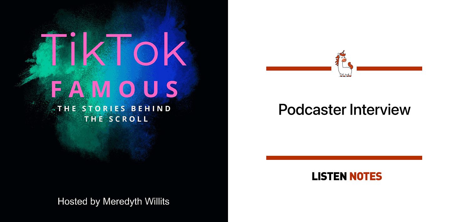 Podcasting was a natural next step for me. After creating Meredyth with a Why and growing a following of over 600,000 on TikTok (and more than 1.2 million across platforms), I wanted to deepen the kind of connection that social media alone can’t fully hold. I’ve built incredible relationships with creators and influencers through the platform, and TikTok FAMOUS™ became the perfect space to take those conversations further—to explore the why behind their success, creativity, and influence. I love podcasts that mix inspiration and strategy, like Gary Vee’s, as well as long-form storytelling shows that pull back the curtain on human behavior. That blend of real talk and real life is exactly what I wanted to bring to this show.